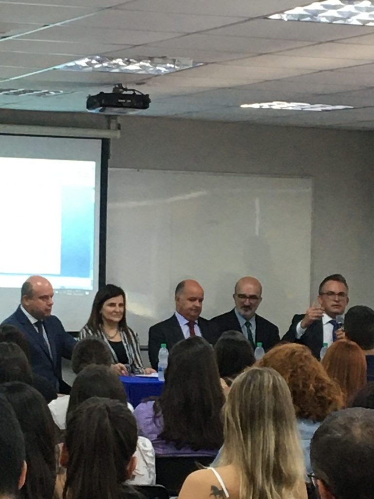 O professor Fernando Araújo falou para a turma de Pós-Graduação em Direito Aplicado no dia 10/03 sobre “A Análise Econômica do Processo – Breves Tópicos”. Junto com ele estavam presentes, Paula Vaz Freire – Diretora e Professora Associada da Faculdade de Direito da Universidade de Lisboa e Oksandro Gonçalves – Professor Titular de Direito Comercial da Escola de Direito da Pontifícia Universidade Católica do Paraná, que palestraram sobre os seguintes temas: “Contratos de Adesão: Perspectiva da Análise Econômica do Direito” e “As demandas frívolas sob a perspectiva da Análise Econômica do Direito”. Da esquerda pra direita Professor Oksandro Gonçalves – Professor Titular de Direito Comercial da Escola de Direito da Pontifícia Universidade Católica do Paraná , Paula Vaz Freire – Diretora e Professora Associada da Faculdade de Direito da Universidade de Lisboa, Des. Clayton de Albuquerque Maranhão – Diretor geral da EMAP, Professor Fernando Araújo e Des. Ramon de Medeiros Nogueira – TJPR. Turma de Pós Graduação em Direito Aplicado