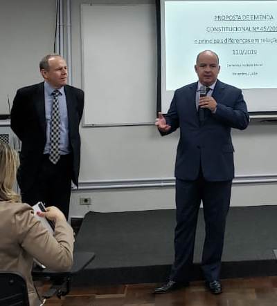 AMAPAR, EMAP e APMP reuniram nesta sexta-feira, dia 14, autoridades para debater dois temas de extrema preocupação e alvo de críticas, que são o “Pacote Anticrime” e a “Lei de Abuso de Autoridade”. O evento foi aberto pelo diretor-geral da EMAP, o desembargador Clayton de Albuquerque Maranhão, que saudou os presentes e ressaltou a necessidade de debater as alterações legislativas “tendo em vista os impactos”, como relacionou ao trabalho de magistrados e membros do Ministério Público. O magistrado também ressaltou a grande adesão ao evento, pelo eficiente sistema de EAD da EMAP, que cada vez mais tem conquistado audiência. “São 2300 pessoas inscritas para o evento, em todos os rincões do Paraná”, comemorou. O presidente da AMAPAR, Geraldo Dutra de Andrade Neto, lembrou que os sensíveis temas propostos ao debate têm merecido grande atenção da magistratura. “Estamos preocupados com as medidas aprovadas, mas, agora, temos que passar uma mensagem à população a despeito disso”, comentou. A evolução do Judiciário também mereceu comentário do presidente Geraldo Dutra, que lembrou do início de sua carreira e também da passagem pela EMAP como cursista. “Estou na carreira da magistratura há 20 anos e percebo a evolução. Devemos, sempre, aprender e melhorar”, afirmou. O magistrado também teceu elogios à coordenação da EMAP pelo empenho, além da aceitação do desembargador Clayton Maranhão de continuar na direção-geral. Presenças O seminário também foi prestigiado, na abertura, pelo presidente do TJPR, Adalberto Jorge Xisto Pereira, que elogiou a atual condução dos trabalhos na EMAP e a escolha dos temas propostos. Na condição de co-organizador, o presidente da APMP, André Tiago Glitz, ratificou os elogios conferidos à EMAP e a oportunidade de discutir os temas que impactam no sistema de justiça criminal. Ao representar o procurador-geral do MP, Ivonei Sfoggia, o promotor de Justiça e professor, Eduardo Cambi, que é diretor da Escola do MP, disse que as parcerias entre magistratura e membros do MP objetivam aperfeiçoar o sistema de justiça e qualificar os profissionais. Também presentes o diretor do núcleo de Curitiba da EMAP, Eduardo Novacki, a supervisora pedagógica da instituição, Rafaela Mattioli Somma, a vice-diretora do núcleo de Curitiba, Caroline Fontes Vieira, além de desembargadores, membros do MP, advogados e estudantes. Confira abaixo os temas elencados para o encontro Competência do juiz frente à prova ilícita Dr. Paulo César Busato, Procurador de Justiça do MPPR Acordo de não persecução penal Dr. Rodrigo Leite Ferreira Cabral, Promotor de Justiça do MPPR Aspectos da lei penal material – prescrição Dr. Fabio André Guaragni, Procurador de Justiça do MPPR O juiz como um terceiro interessado e a falácia da inércia absoluta na produção da prova testemunhal como uma solução de garantia para o réu Dr. Rodrigo Régnier Chemim Guimarães, Procurador de Justiça do MPPR O requisito da contemporaneidade para a decretação da prisão preventiva (art. 312, § 2º do CPP) Dr. Fernando Bardelli Silva Fischer, Juiz de Direito do TJPR Análise crítica dos tipos penais da Lei de Abuso Dr. Marcelo Quentin, juiz de Direito do TJPR Cadeia de custódia na nova lei Dra. Érica de Oliveira Hartmann, Defensora Pública da União Alterações relativas à colaboração premiada Dr. Ricardo Rachid de Oliveira, Juiz Federal na Seção Judiciária do Paraná Considerações sobre o juiz de garantias Dra. Danielle Nogueira Mota Comar, Juíza de Direito do TJPR Implementação do Juiz de Garantias no Poder Judiciário do Estado do Paraná Dr. César Ghizoni, Juiz de Direito Auxiliar da Presidência do TJPR