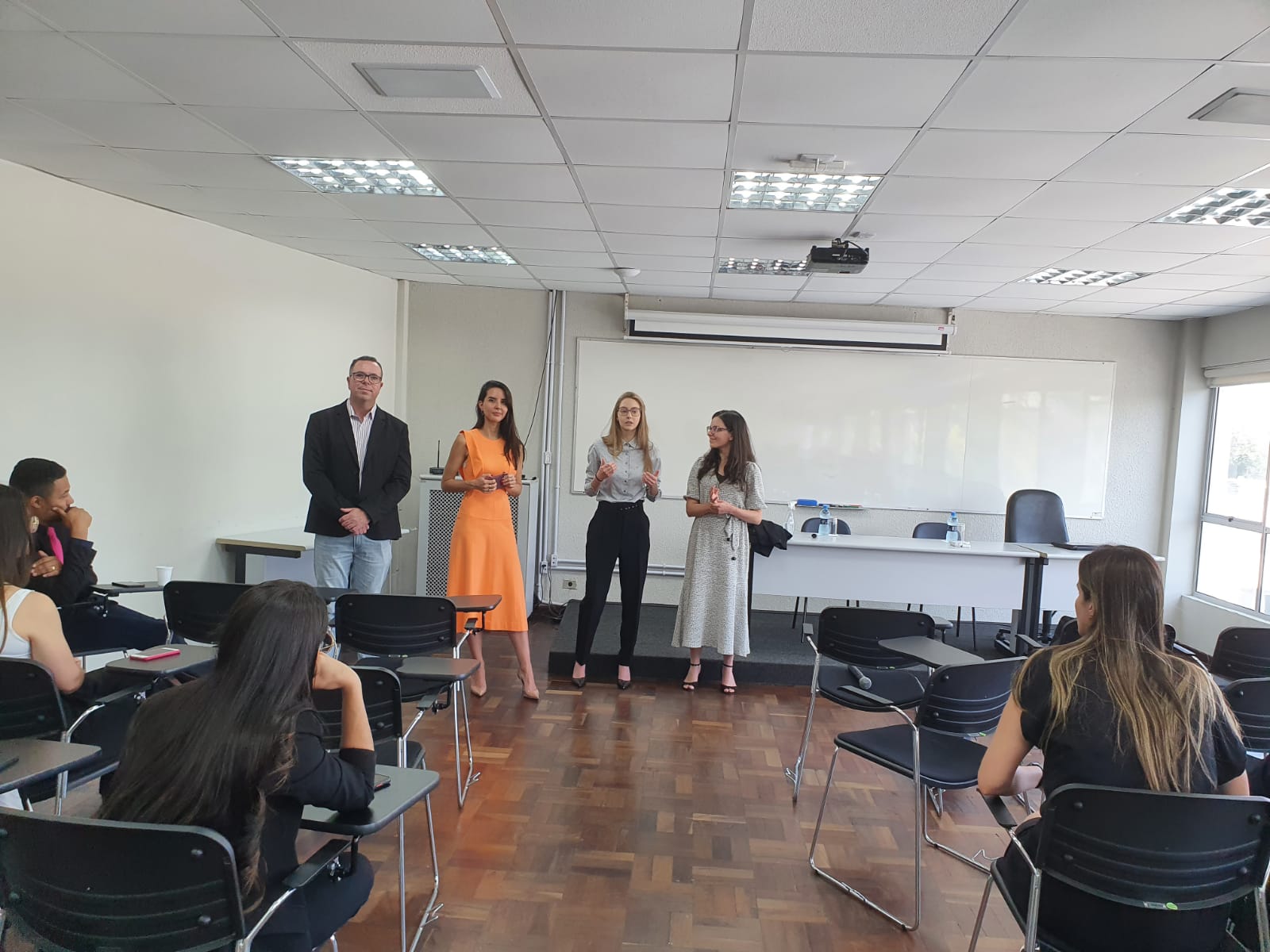 As magistradas Priscila Gabriely Jorge (aprovada em primeiro lugar) e Luiza Hey Toscano de Oliveira (aprovada em segundo lugar) visitaram a sede da EMAP nesta quinta-feira, 27 de outubro de 2022, e conversaram com os alunos sobre suas experiências, dificuldades e rotinas de estudos até a aprovação no último concurso para Juiz Substituto do TJPR.